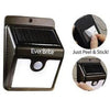 Lampa LED cu incarcare solara si senzor de miscare EVERBRITE este cea mai rapida si eficienta solutie de a ilumina curtea, scara, usa, garajul sau depozitul fara sa instalati fire electrice si fara sa gauriti peretii. Se fixeaza pe orice tip de suprafata, chiar si deformata, datorita adezivului puternic si este reincarcabila datorita luminii de la soare. Lumina se activeaza doar cand detecteaza miscare iar pe timpul zilei se incarca de la lumina solara, deci nu e nevoie de fire electrice sau baterii pentru a functiona. Dupa o zi de incarcare solara va functiona pana la 12 ore!